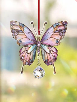 Acrylic 2D Flat Butterfly Charm Ornament, Pink Pastel Crystal Suncatcher, Fairycore Window Hanging Decor, Sunlight Catcher, Birthday Gift
